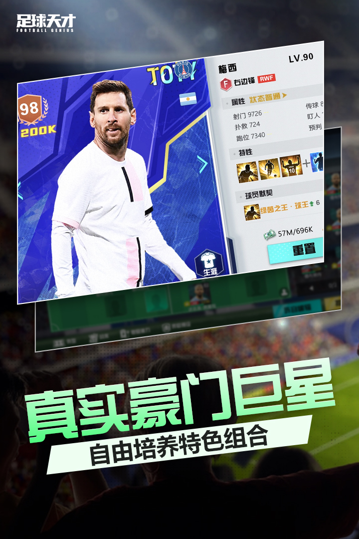 《足球天才》是由FIFPro官方正版授权的以现代足球为主题的卡牌策略经营足球游戏,玩家可以通过收集和培养球员卡牌 、体验跨越时空的足球对决。更多 分类 : 体育竞技运动
